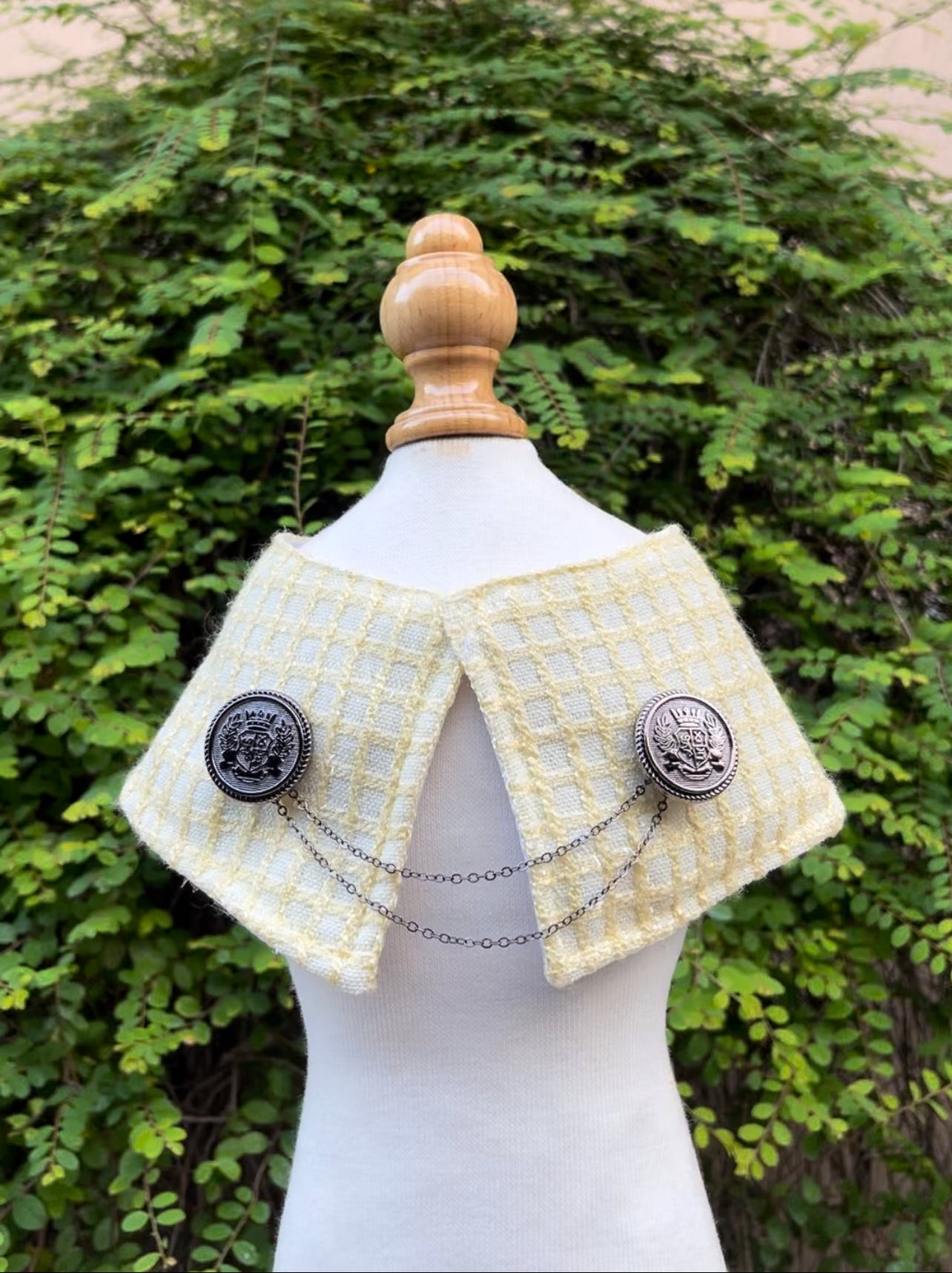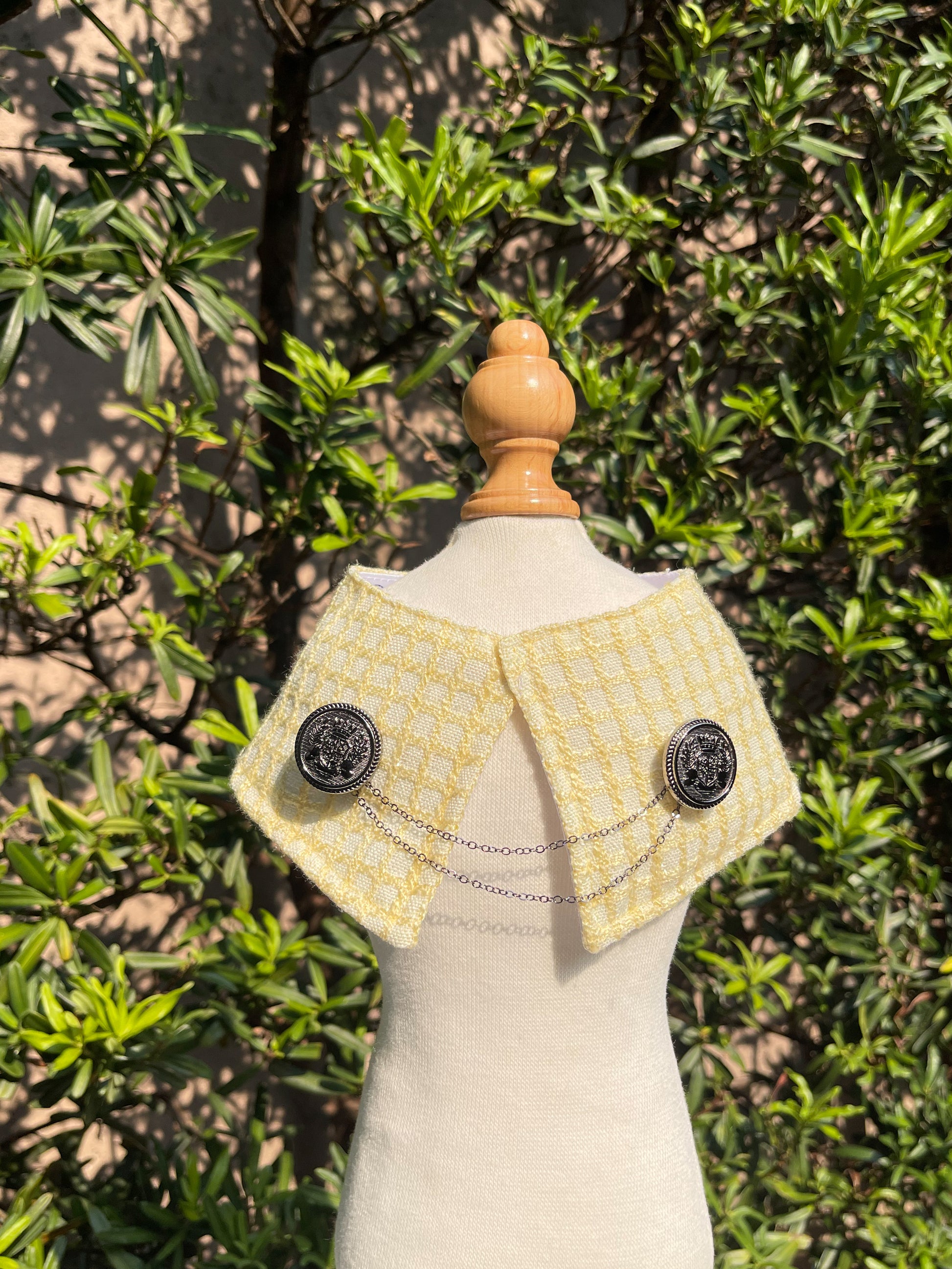 Each cape that we produce is lovingly handmade which means that every product is unique and may have slight differences in sizing and in the placement of patterns and designs. For your pet’s safety, please supervise them while wearing our pieces.